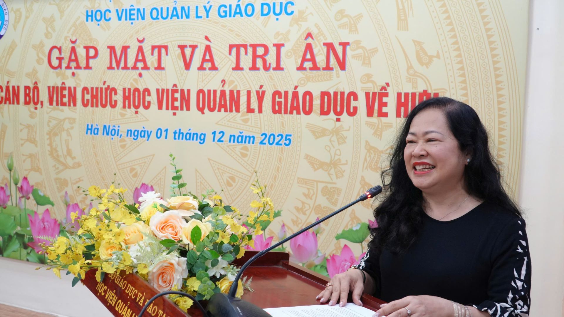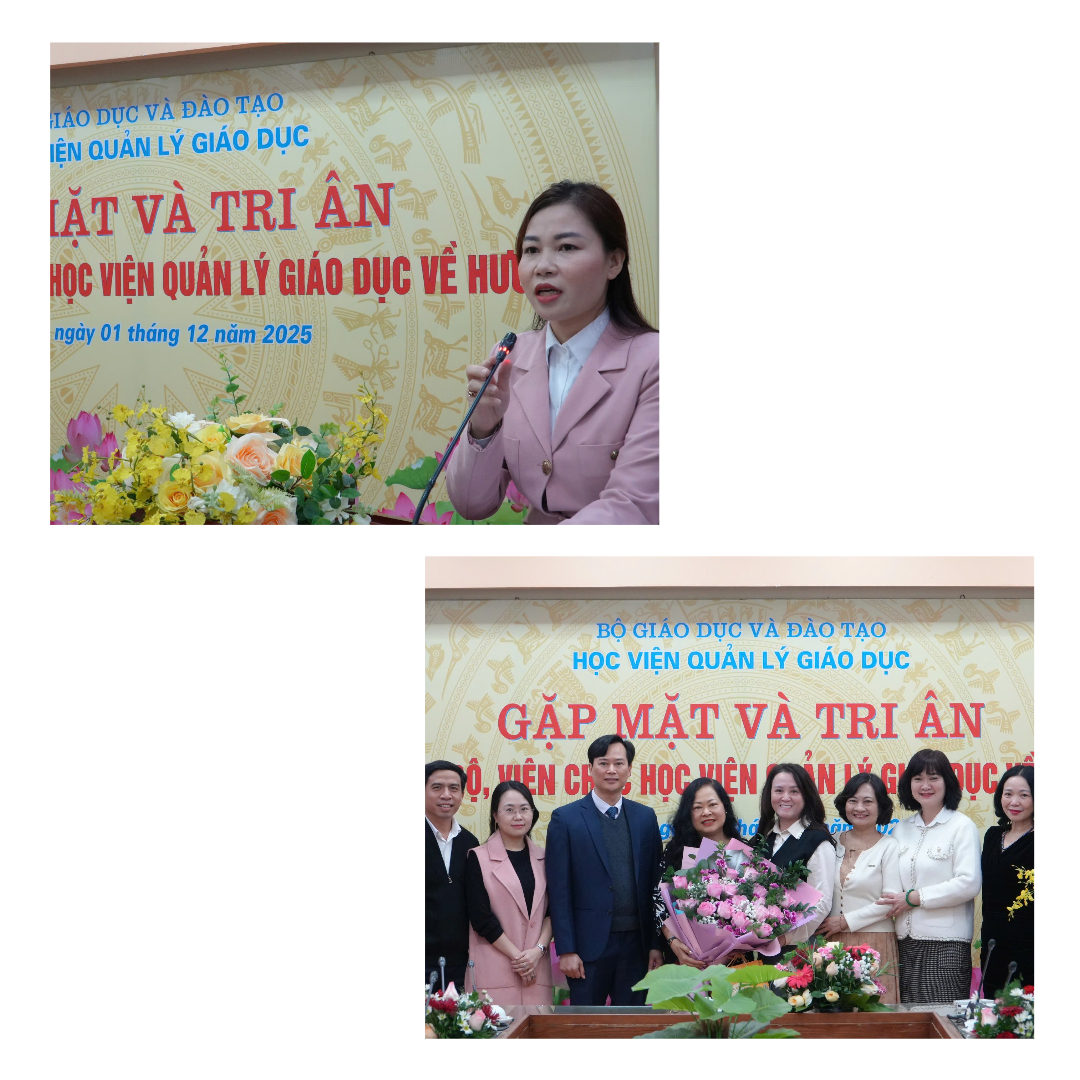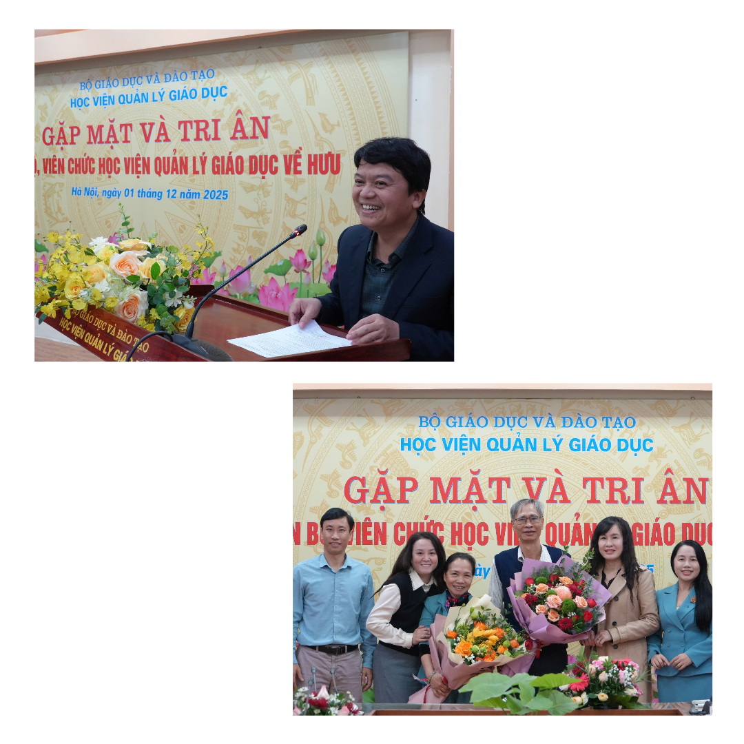 Ngày 02/12/2025, trong phiên họp giao ban cán bộ chủ chốt tháng 12/2025, Học viện Quản lý Giáo dục đã long trọng tổ chức buổi gặp mặt và tri ân 03 cán bộ, viên chức, người lao động được nghỉ hưởng chế độ hưu trí theo quy định của Nhà nước.