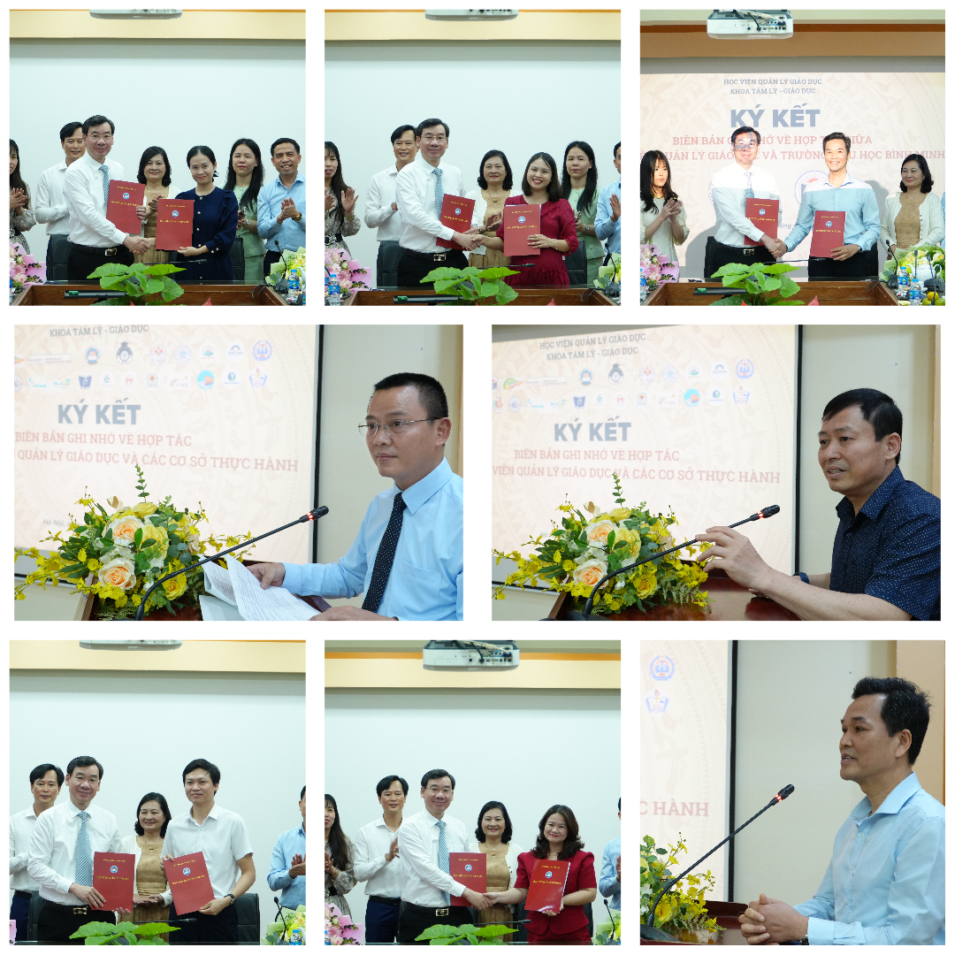 Sáng ngày 23/4/2026, Học viện Quản lý Giáo dục đã tổ chức thành công chương trình ký kết Biên bản ghi nhớ hợp tác giữa Học viện và các cơ sở thực hành, thực tập trong lĩnh vực tâm lý – giáo dục. Sự kiện là dấu mốc quan trọng trong chiến lược đổi mới hoạt động đào tạo, đặc biệt đối với các chương trình do Khoa Tâm lý – Giáo dục phụ trách.