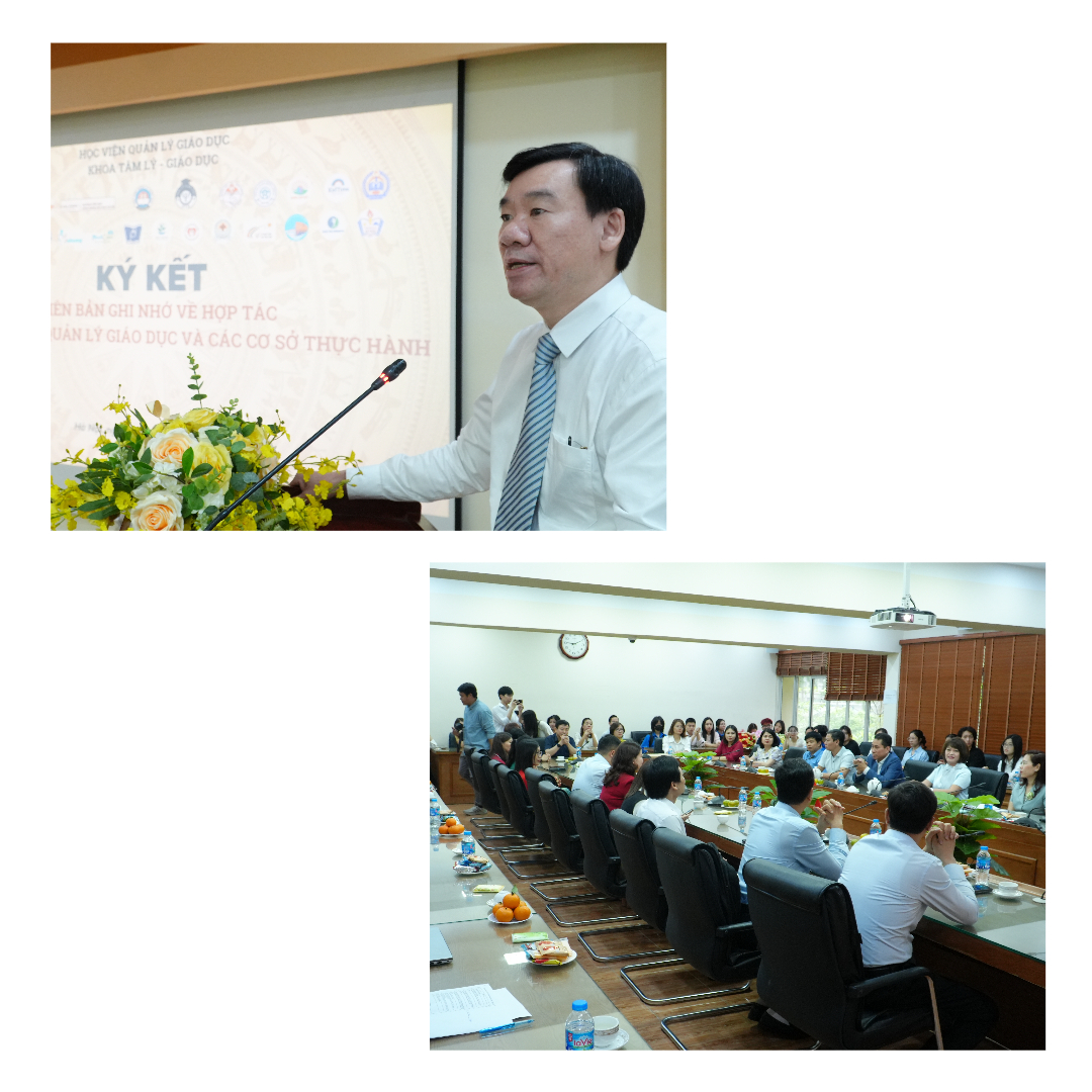 Phát biểu tại chương trình, PGS.TS. Phạm Văn Thuần – Giám đốc Học viện nhấn mạnh ý nghĩa của việc thiết lập mạng lưới cơ sở thực hành, thực tập trong đổi mới đào tạo, nâng cao chất lượng nguồn nhân lực và đáp ứng nhu cầu ngày càng lớn của xã hội về đội ngũ chuyên gia tâm lý – giáo dục có năng lực thực hành, đạo đức nghề nghiệp và khả năng thích ứng với môi trường nghề nghiệp.