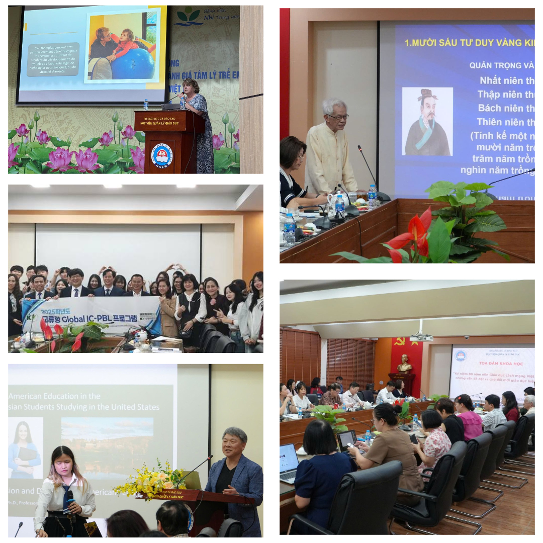 Học viện phối hợp với Học viện Phát triển Quản lý giáo dục (Lào) tổ chức Hội nghị khoa học Quốc tế “Nâng cao năng lực cho cán bộ quản lý giáo dục nước CHDC Nhân dân Lào và kinh nghiệm thực tiễn ở Việt Nam”. Học viện phối hợp với Cục Nhà giáo và Cán bộ quản lý giáo dục, Bộ Giáo dục và Đào tạo tổ chức 02 hội thảo khoa học quốc gia với chủ đề: “Phát triển chương trình, tài liệu bồi dưỡng cán bộ quản lý giáo dục trong bối cảnh hiện nay” và “Phát triển năng lực quản lý nhà nước về giáo dục cho cán bộ quản lý cấp sở, xã và cơ sở giáo dục khi thực hiện mô hình chính quyền địa phương 02 cấp”. Tọa đàm khoa học với chủ đề “Bẫy thu nhập trung bình, nhu cầu đào tạo nguồn nhân lực của Việt Nam trong giai đoạn hiện nay” Tọa đàm khoa học quốc tế với chủ đề “American Education in the Imagination of Asian students studying in the United States - The Illusion and drive for an American Education” (Du học học sinh Châu Á lý tưởng hóa nền Giáo dục Hoa Kỳ – Phải chăng đó là sự ảo tưởng về nền giáo dục Mỹ) do GS.TS John David Palmer đến từ Đại học Colgate, Hợp chủng Quốc Hoa Kỳ trình bày. Tọa đàm khoa học với chủ đề “Kỷ niệm 80 năm nền Giáo dục cách mạng Việt Nam và những vấn đề đặt ra cho đổi mới giáo dục hiện nay”. Học viện phối hợp với 4 trường ĐH (Học viện Tài chính, Học viện Chính sách và PT, ĐH Thương Mại, ĐHSP Kỹ thuật Hưng Yên) tổ chức Hội thảo Quốc gia 2025 chủ đề: “Dạy và học ngoại ngữ ở bậc đại học trong kỷ nguyên số”.