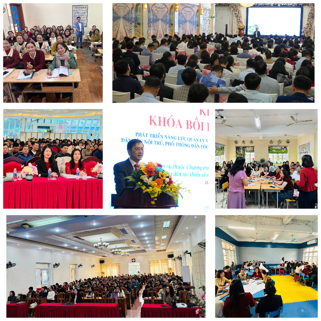 Với vị trí, vai trò của một đơn vị tham mưu xây dựng chính sách, giúp Bộ GDĐT thực hiện chức năng quản lý nhà nước về giáo dục, năm 2025 Học viện đã tham mưu, tư vấn và được Bộ GDĐT giao cho Học viện thực hiện nhiệm vụ nghiên cứu, khảo sát, xây dựng tài liệu và tổ chức tập huấn cho gần 1500 lượt cán bộ quản lý các trường PTDTNT, PTDTBT trên cả nước theo hình thức trực tuyến (3 ngày) và trực tiếp (02 ngày trực tiếp ở Đà Nẵng, TP. Hồ Chí Minh, Cần Thơ và Hà Nội).