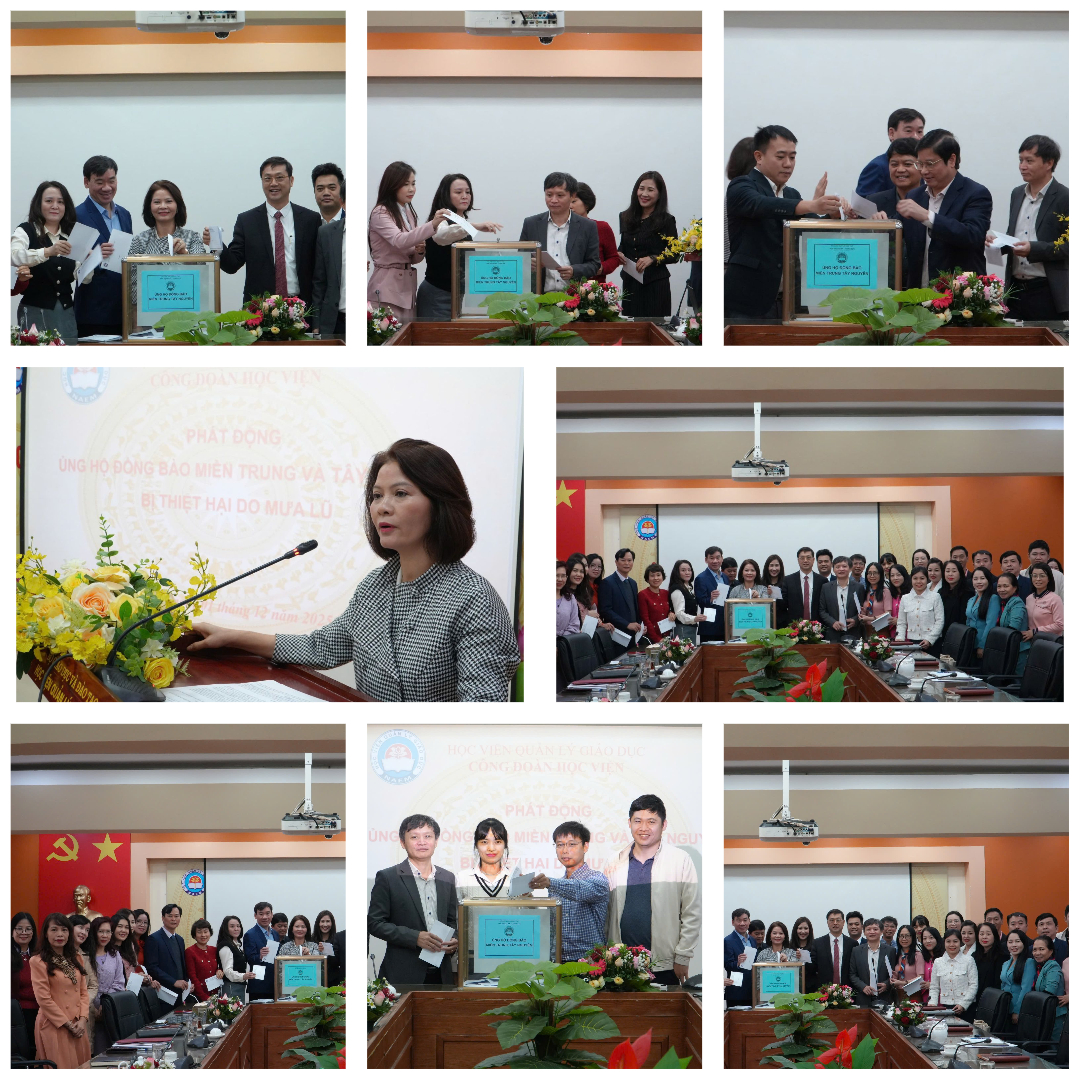 Công Đoàn Hoc viện phát động phong trào chung tay ủng hộ đồng bào miền Trung và Tây Nguyên bị ảnh hưởng bão, lũ lụt do Mặt trận Tổ quốc Việt Nam, Công đoàn Giáo dục Việt Nam phát động với tổng số tiền ủng hộ là 50 triệu đồng.