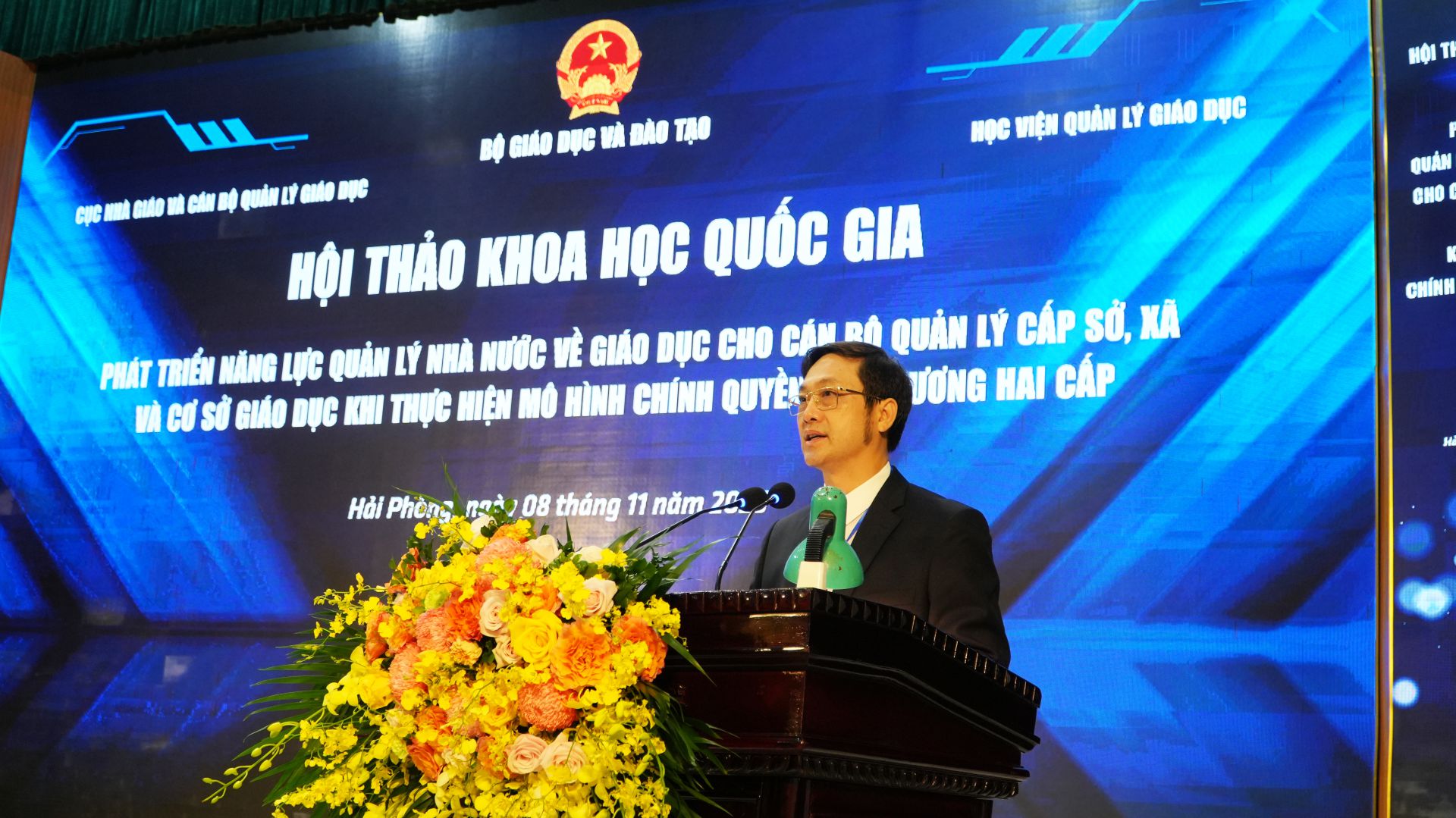 Phát biểu khai mạc, chỉ đạo hội thảo ông Nguyễn Minh Đức, Cục trưởng Cục Nhà giáo và Cán bộ Quản lý Giáo dục khẳng định: Từ ngày 01/7/2025, việc thực hiện chính quyền địa phương hai cấp thể hiện tầm nhìn chiến lược của Đảng và Nhà nước ta, nhằm đưa bộ máy hành chính đến gần hơn với người dân, tăng cường tính chủ động, linh hoạt trong điều hành, đồng thời nâng cao chất lượng, hiệu quả phục vụ nhân dân. Trong tiến trình đó, giáo dục và đào tạo là một trong những lĩnh vực chịu tác động trực tiếp và sâu sắc nhất.