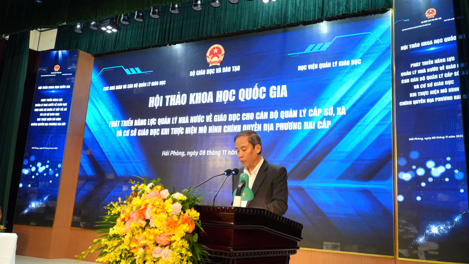 Ngày 08/11/2025, tại Thành phố Hải Phòng, Học viện Quản lý giáo dục phối hợp với Cục Nhà giáo và Cán bộ quản lý giáo dục, Bộ Giáo dục và Đào tạo tổ chức Hội thảo khoa học quốc gia với chủ đề “Phát triển năng lực quản lý giáo dục cho cán bộ quản lý các cấp sở, xã và cơ sở giáo dục khi thực hiện mô hình chính quyền địa phương hai cấp”.