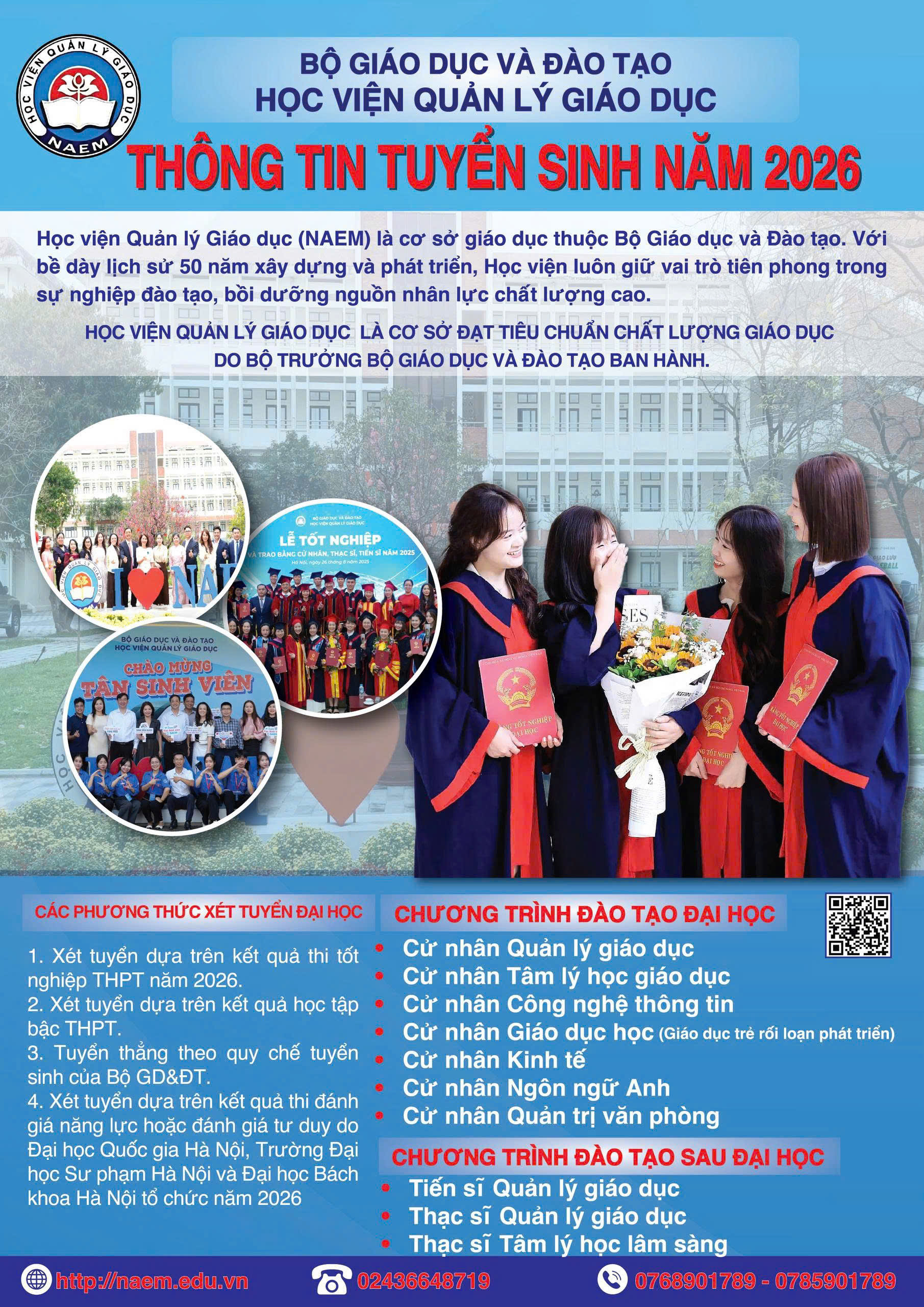 THÔNG TIN TUYỂN SINH NĂM 2026 – HỌC VIỆN QUẢN LÝ GIÁO DỤC