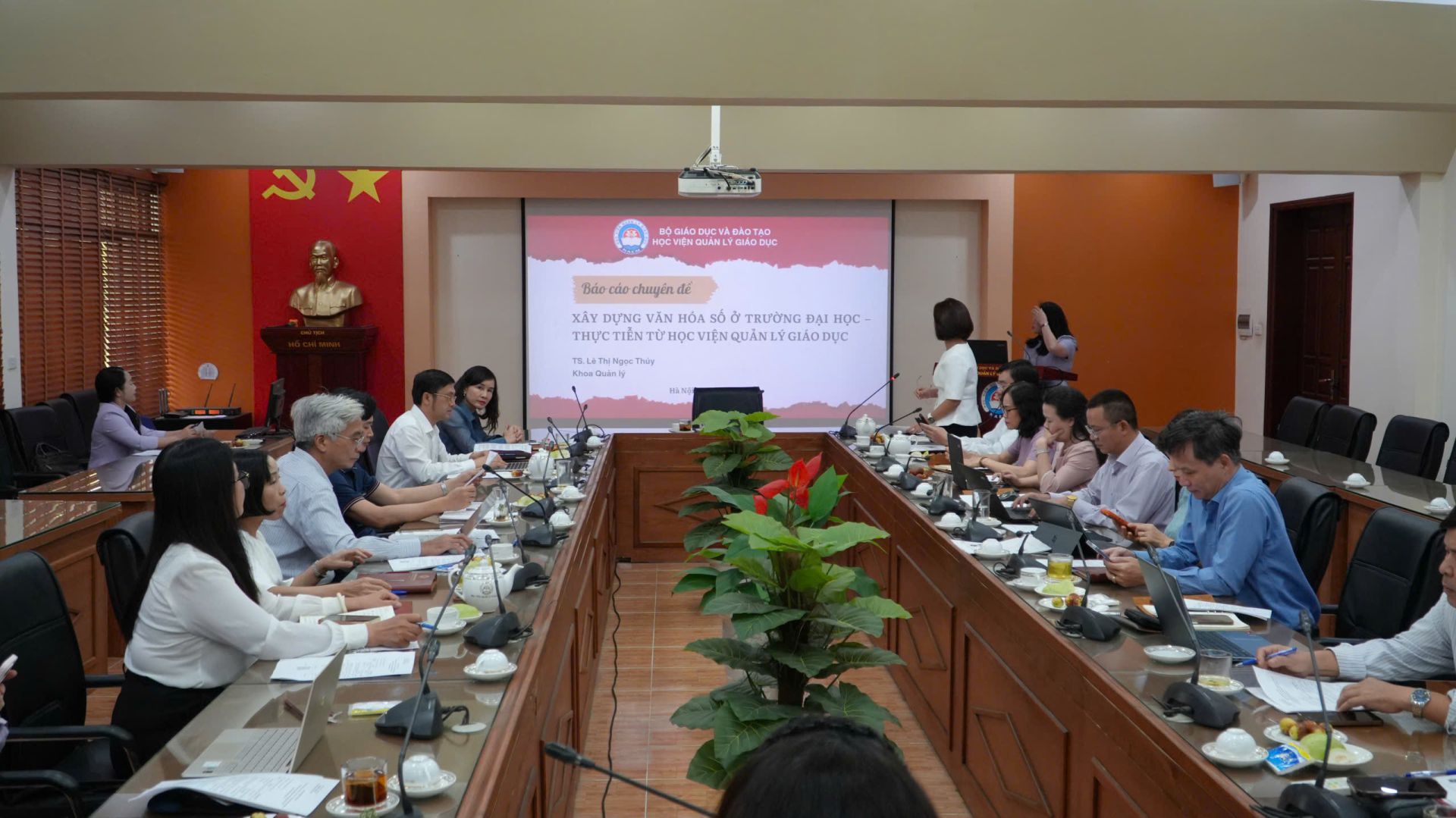 Để triển khai thực hiện Nghị quyết số 57-NQ/TW ngày 22/12/2024 của Bộ Chính trị về “Xây dựng và phát triển văn hóa số, công dân số và xã hội số Việt Nam đến năm 2035, tầm nhìn đến năm 2045”, ngày 28 tháng 10 năm 2025, Hội đồng trường Học viện Quản lý Giáo dục đã tổ chức Tọa đàm: Tăng cường năng lực quản trị số và văn hóa số trong hệ thống quản lý của Học viện Quản lý giáo dục – Từ nhận thức đến hành động thực hiện Nghị quyết 57-NQ/TW”.