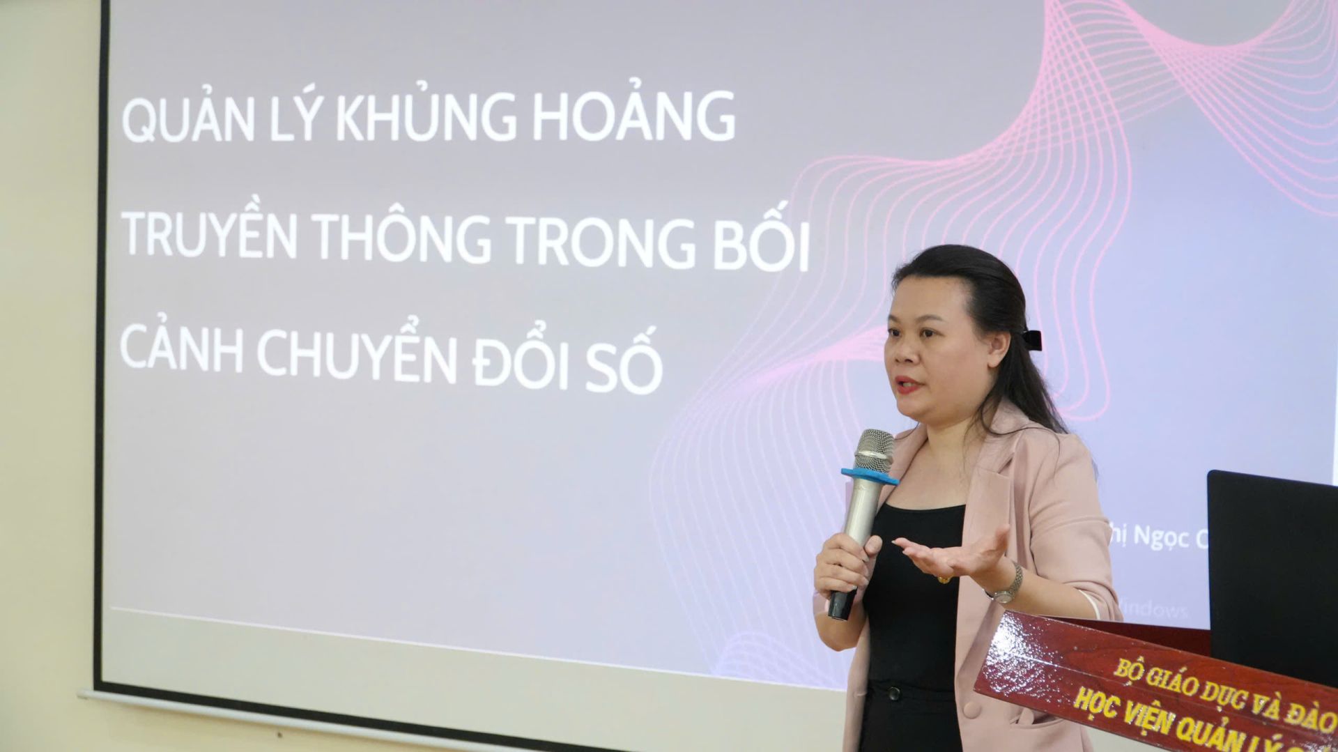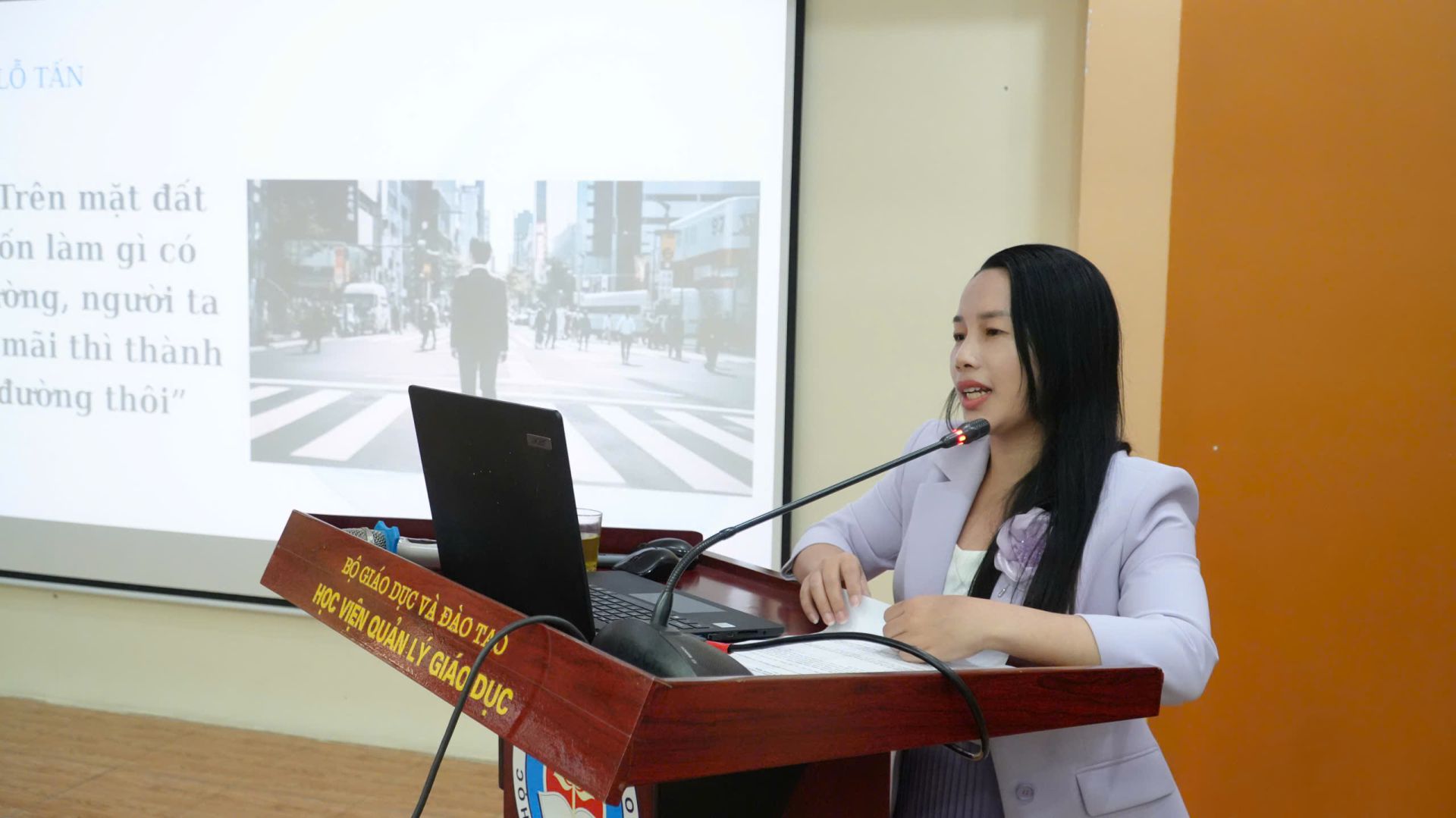 Để tổ chức buổi Tọa đàm này, Hội đồng Học viện đã có 4 báo cáo tham luận: “Quản trị trường học thông minh bằng SCHOOL AI AGENTS” của TS. Đỗ Viết Tuân, Phó trưởng khoa, phụ trách Khoa Công nghệ thông tin và Truyền thông; “Đổi mới, sáng tạo, đột phá về khoa học công nghệ và giáo dục trong kỷ nguyên số – Từ tư duy đến hành động”, của ThS Trần Thị Diệu Nga, Phó trưởng phòng Quản trị, thiết bị; “Xây dựng văn hóa số ở trường đại học – Thực tiễn tại Học viện Quản lý giáo dục” của TS. Lê Thị Ngọc Thúy, Trưởng khoa Quản lý và “Quản lý khủng hoảng truyền thông trong bối cảnh chuyển đổi số: Từ nhận thức đến hành động tại Học viện Quản lý Giáo dục” của NCS. Đinh Thị Ngọc Oanh, Phó Giám đốc Trung tâm CNTT- Thư viện