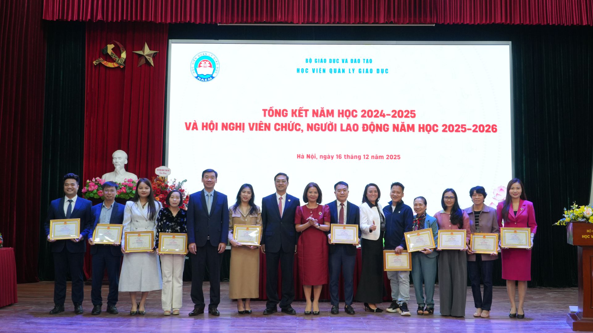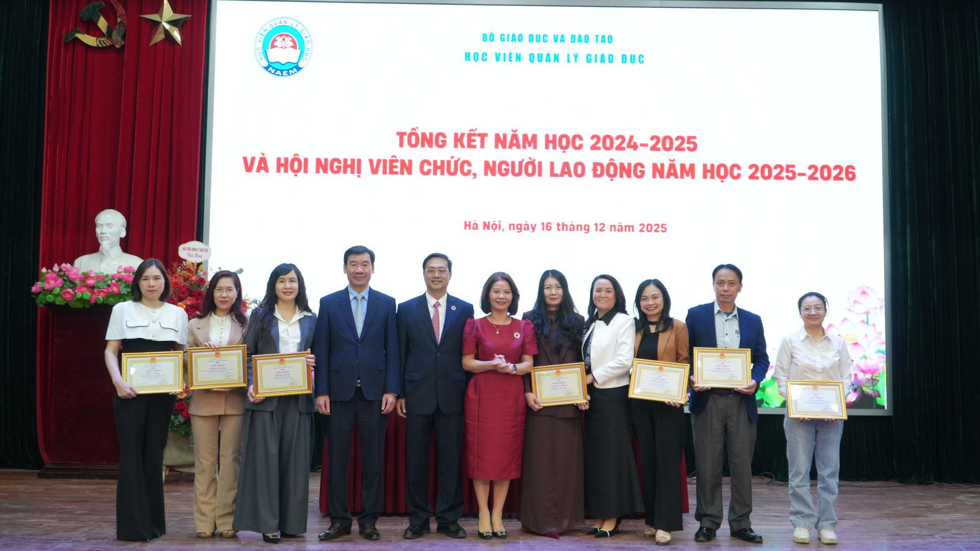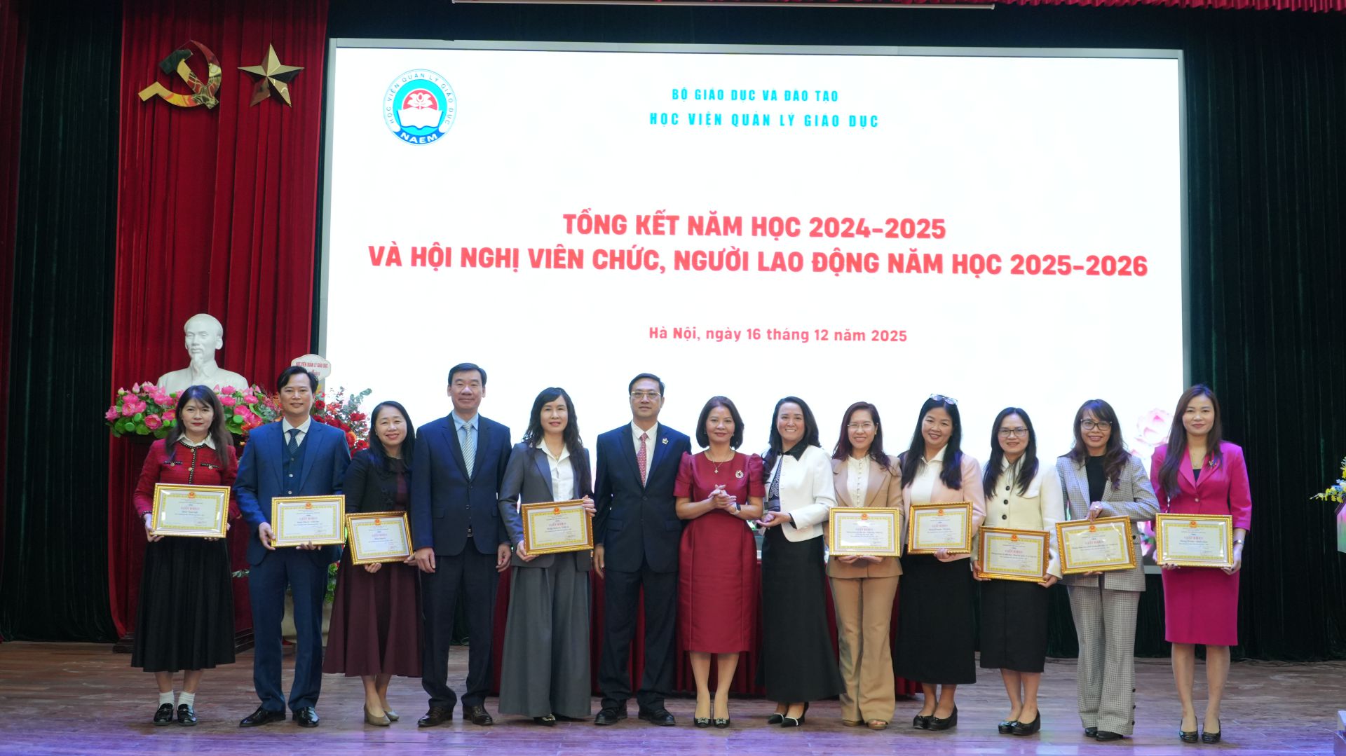 Ngày 16/12/2025, Học viện Quản lý Giáo dục tổ chức Hội nghị Tổng kết năm học 2024 – 2025 và Hội nghị viên chức, người lao động năm học 2025 – 2026 nhằm đánh giá những kết quả đã đạt được, những nội dung chưa đạt còn hạn chế; phân tích nguyên nhân, rút ra các bài học kinh nghiệm trong thực hiện nhiệm vụ không chỉ của một năm học mà còn của năm học kết thúc giai đoạn 2020 – 2025 trong Kế hoạch chiến lược phát triển Học viện giai đoạn 2020 – 2030, tầm nhìn đến năm 2035. Trên cơ sở đó, Hội nghị triển khai xây dựng phương hướng, nhiệm vụ trọng tâm năm học 2025 – 2026 – năm học khởi đầu giai đoạn mới 2025 – 2030, đồng thời cũng là năm học Học viện tổ chức các hoạt động hướng tới kỷ niệm 50 năm xây dựng và phát triển (01/10/1976 – 01/10/2026).