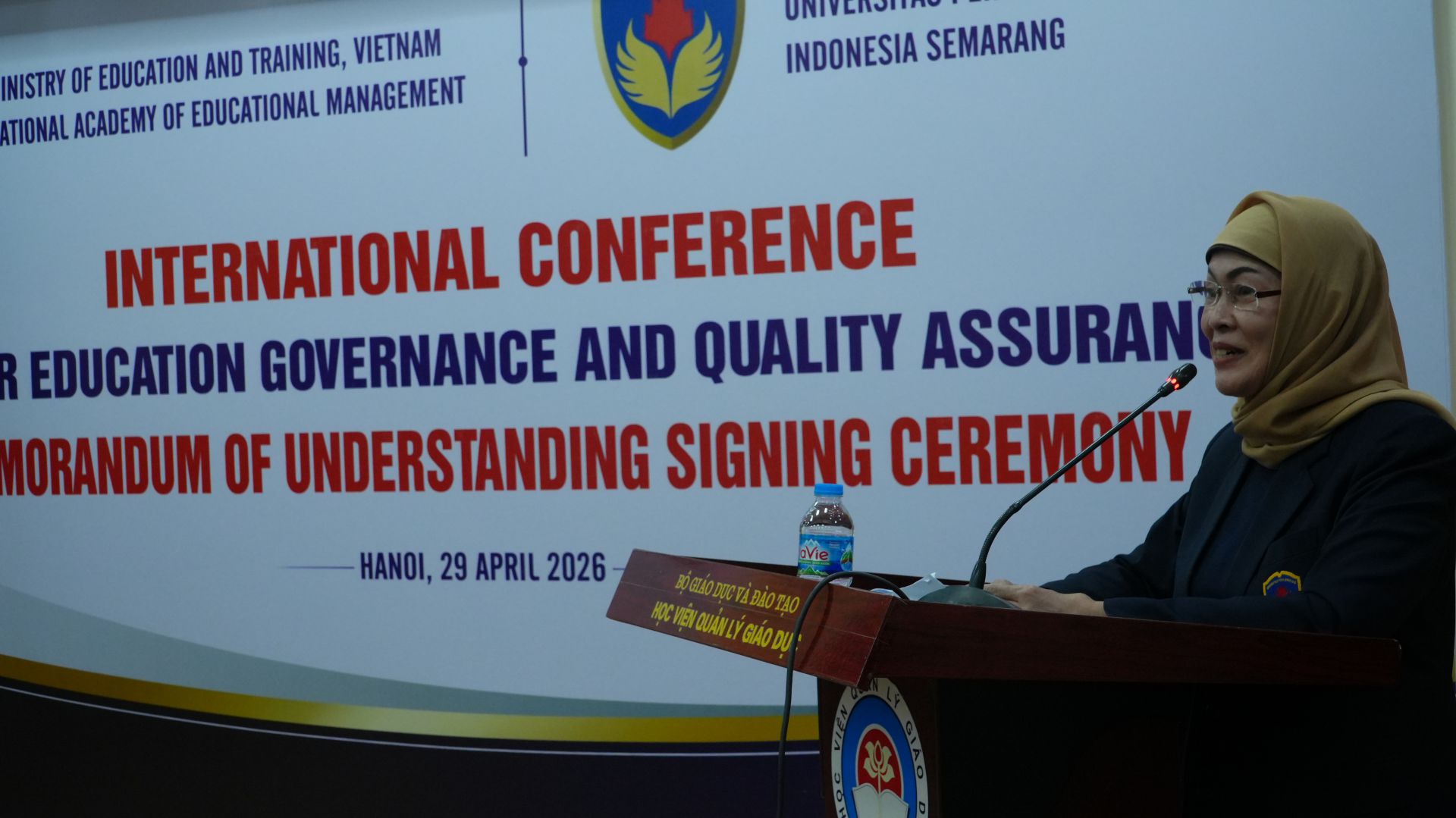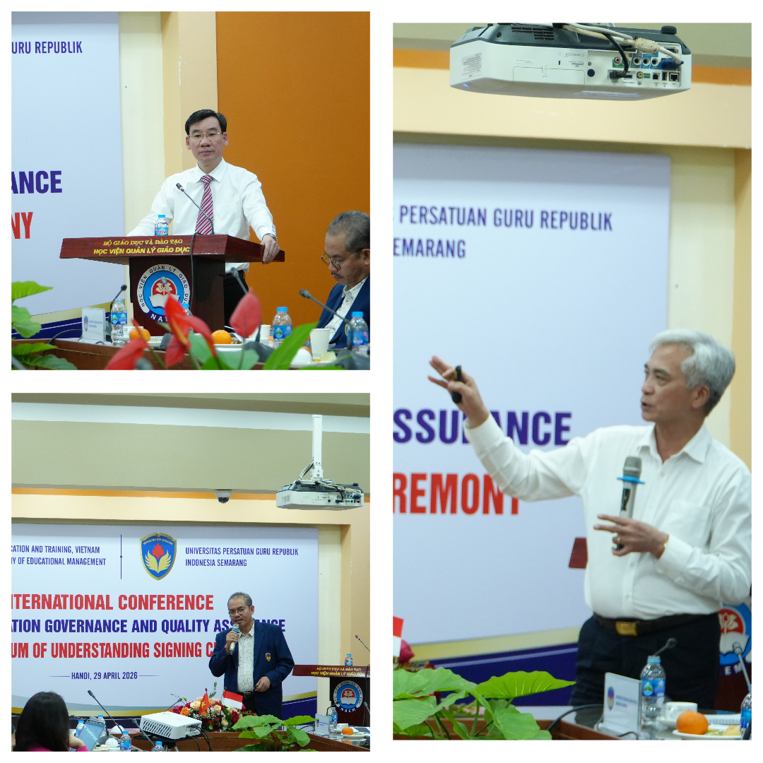 Ngày 29/4/2026, tại trụ sở Học viện Quản lý Qiáo dục, Trường Đại học Liên hiệp Giáo viên Cộng hòa Indonesia Semarang (UPGRIS) và Học viện Quản lý Giáo dục (NAEM) tổ chức Tọa đàm trao đổi kinh nghiệm về quản trị giáo dục đại học, đảm bảo chất lượng giáo dục giữa hai cơ sở giáo dục đại học đồng thời tổ chức Lễ ký kết Biên bản ghi nhớ hợp tác giữa hai bên nhằm thúc đẩy phát triển quan hệ hợp tác trong lĩnh vực quản trị giáo dục đại học, đảm bảo chất lượng; trao đổi học thuật, nghiên cứu khoa học và đào tạo bồi dưỡng nhà giáo và cán bộ quản lý giáo dục