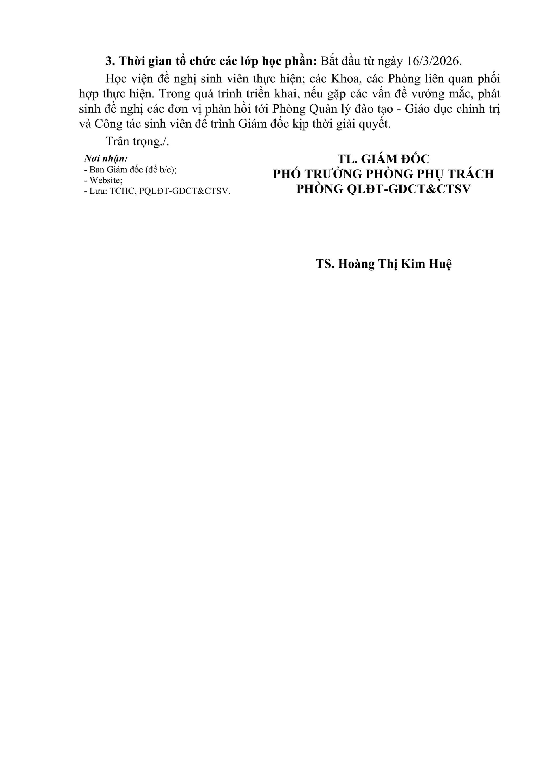 Thông báo điều chỉnh thời gian tổ chức đăng ký tín chỉ các học phần thuộc chương trình đào tạo trình độ đại học - Học kỳ II năm học 2025 - 2026 (Đợt 2)