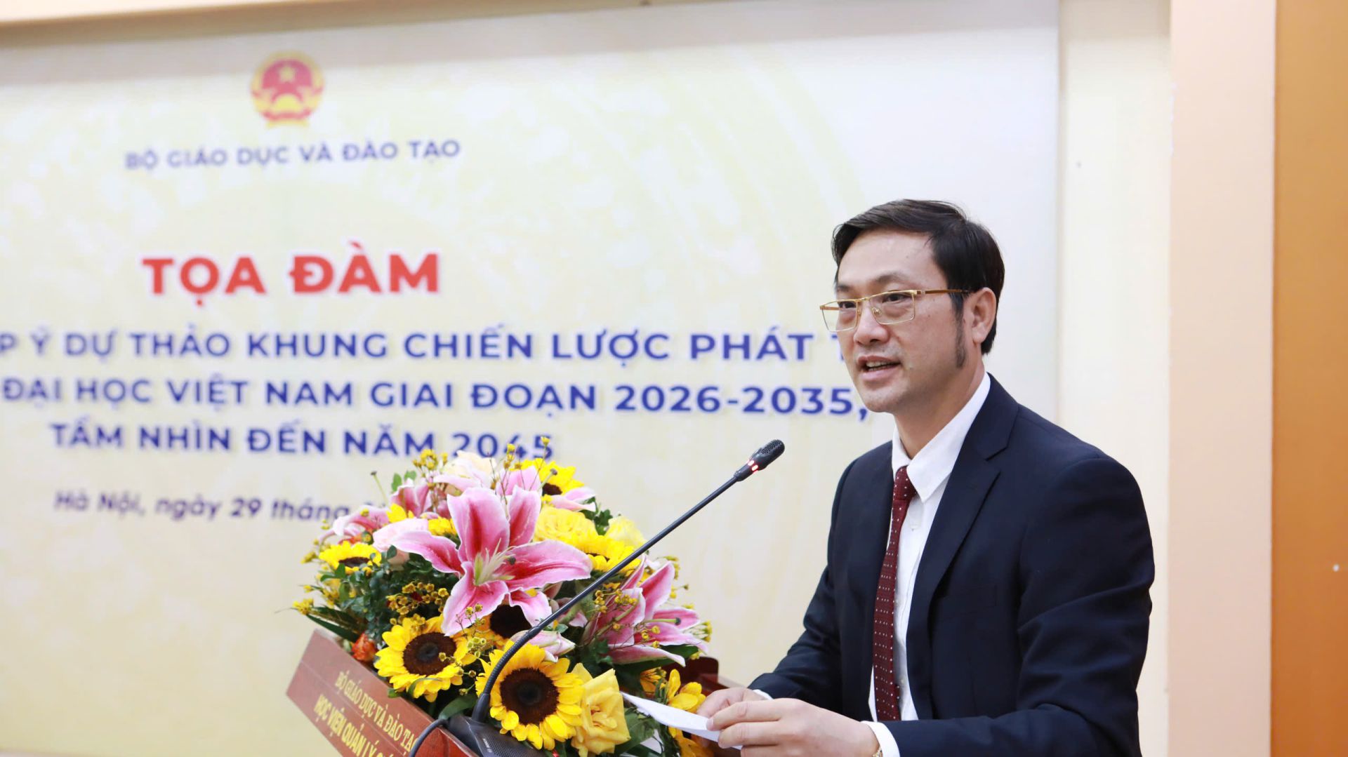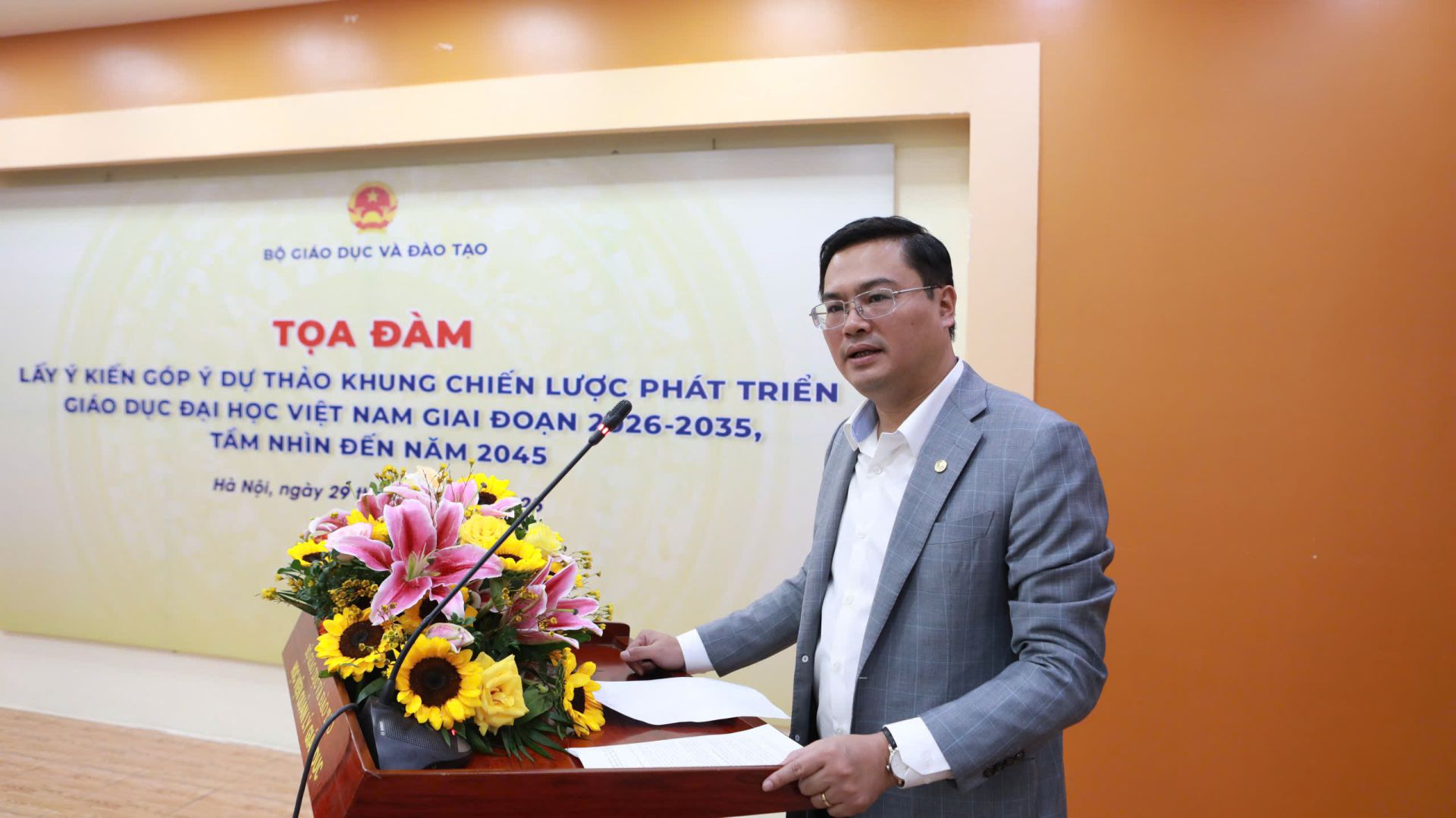 Phát biểu khai mạc buổi Tọa đàm, ông Đặng Văn Huấn – Phó Vụ trưởng Vụ Giáo dục đại học, Bộ Giáo dục và Đào tạo nhấn mạnh: việc xây dựng Khung Chiến lược phát triển giáo dục đại học giai đoạn 2026–2035, tầm nhìn đến năm 2045 là nhiệm vụ có ý nghĩa quan trọng, tạo nền tảng cho đào tạo và phát triển nguồn nhân lực chất lượng cao, đáp ứng yêu cầu phát triển nhanh và bền vững của đất nước trong Kỷ nguyên mới. Nhất là trong bối cảnh ngành Giáo dục đang quyết tâm triển khai thực hiện Nghị quyết số 71-NQ/TW ngày 22/8/2025 của Bộ Chính trị về đột phá phát triển giáo dục và đào tạo, cùng với Nghị quyết số 57-NQ/TW ngày 22/12/2024 của Bộ Chính trị về đột phá phát triển khoa học, công nghệ, đổi mới sáng tạo và chuyển đổi số quốc gia.