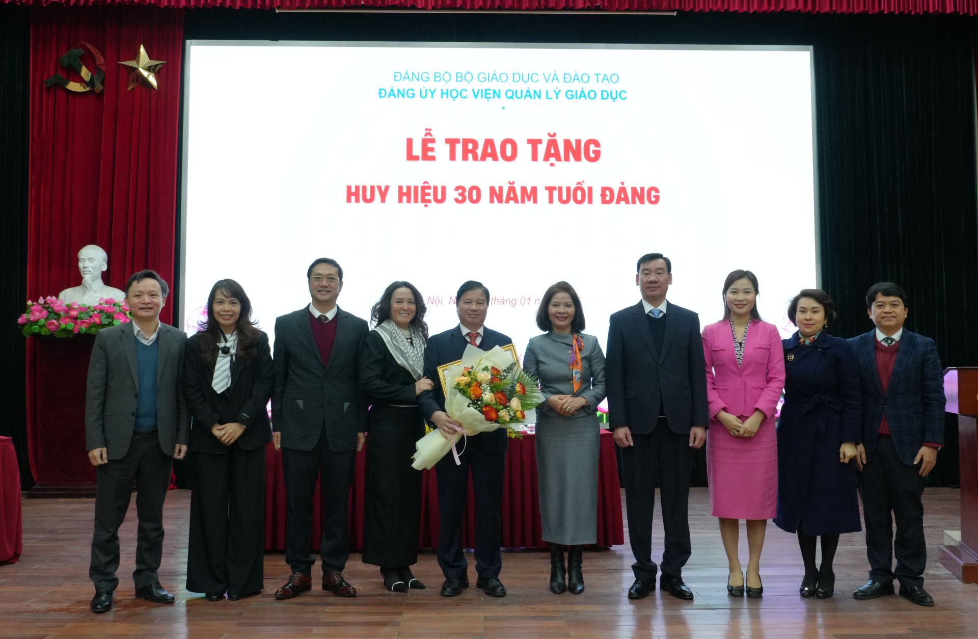 Trong Hội nghị Tổng kết công tác Đảng năm 2025 và triển khai nhiệm vụ trọng tâm năm 2026 này, thừa ủy quyền Đảng ủy Bộ Giáo dục và Đào tạo Đảng ủy Học viện đã trao tặng Huy hiệu 30 năm tuổi Đảng cho GS.TS Phạm Quang Trung, nguyên Bí thư Đảng ủy, nguyên Giám đốc Học viện.
