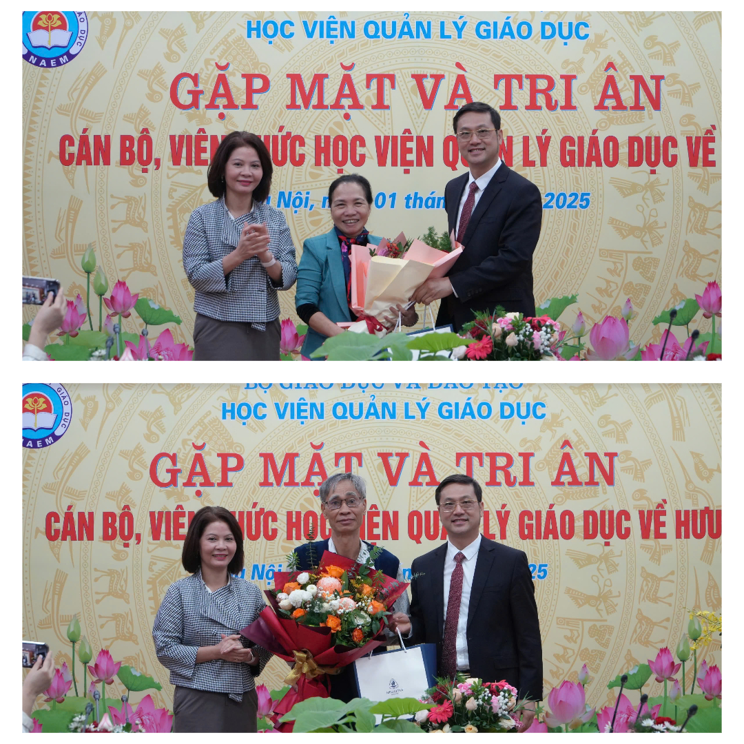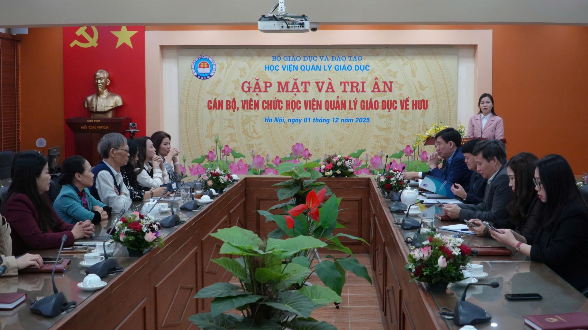 Ngày 02/12/2025, trong phiên họp giao ban cán bộ chủ chốt tháng 12/2025, Học viện Quản lý Giáo dục đã long trọng tổ chức buổi gặp mặt và tri ân 03 cán bộ, viên chức, người lao động được nghỉ hưởng chế độ hưu trí theo quy định của Nhà nước.