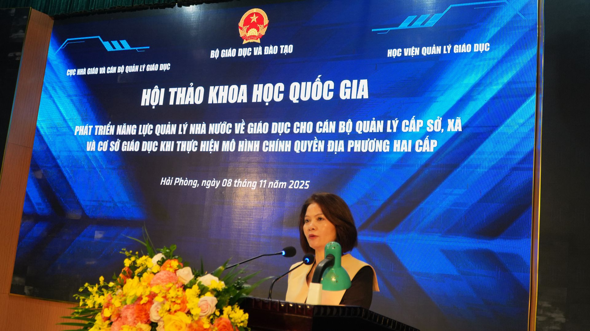 Ngày 08/11/2025, tại Thành phố Hải Phòng, Học viện Quản lý giáo dục phối hợp với Cục Nhà giáo và Cán bộ quản lý giáo dục, Bộ Giáo dục và Đào tạo tổ chức Hội thảo khoa học quốc gia với chủ đề “Phát triển năng lực quản lý giáo dục cho cán bộ quản lý các cấp sở, xã và cơ sở giáo dục khi thực hiện mô hình chính quyền địa phương hai cấp”.