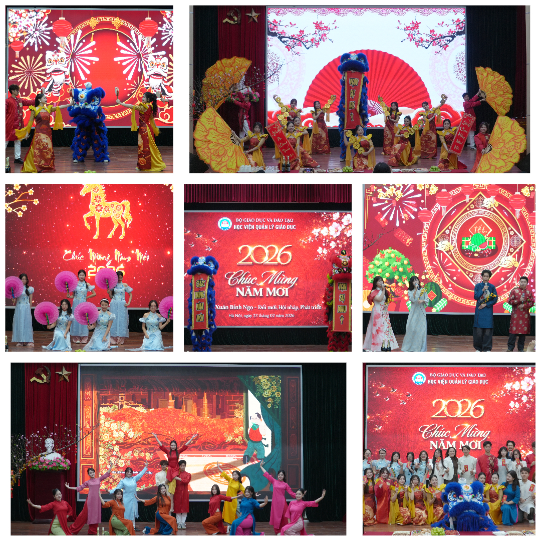 Trong không khí cả nước hân hoan đón Tết - Xuân Bính Ngọ, sáng 23/02/2026, Học viện Quản lý giáo dục đã tổ chức buổi Khai Xuân - gặp mặt đầu năm "Mừng Đảng - Mừng Xuân - Mừng Đất nước đổi mới" của toàn thể cán bộ, giảng viên, viên chức, người lao động, nhất là các em sinh viên của Học viện Quản lý giáo dục (NAEM). Đây là sự kiện thường niên – nét đẹp đầu xuân mới các cán bộ, giảng viên, viên chức, người lao động và các bạn sinh viên, học viên của Học viện, gặp gỡ đầu năm mới, cùng nhau chung vui, cùng chúc nhau những lời chúc tốt đẹp nhất của đầu xuân năm mới như một truyền thống tốt đẹp của người Việt.