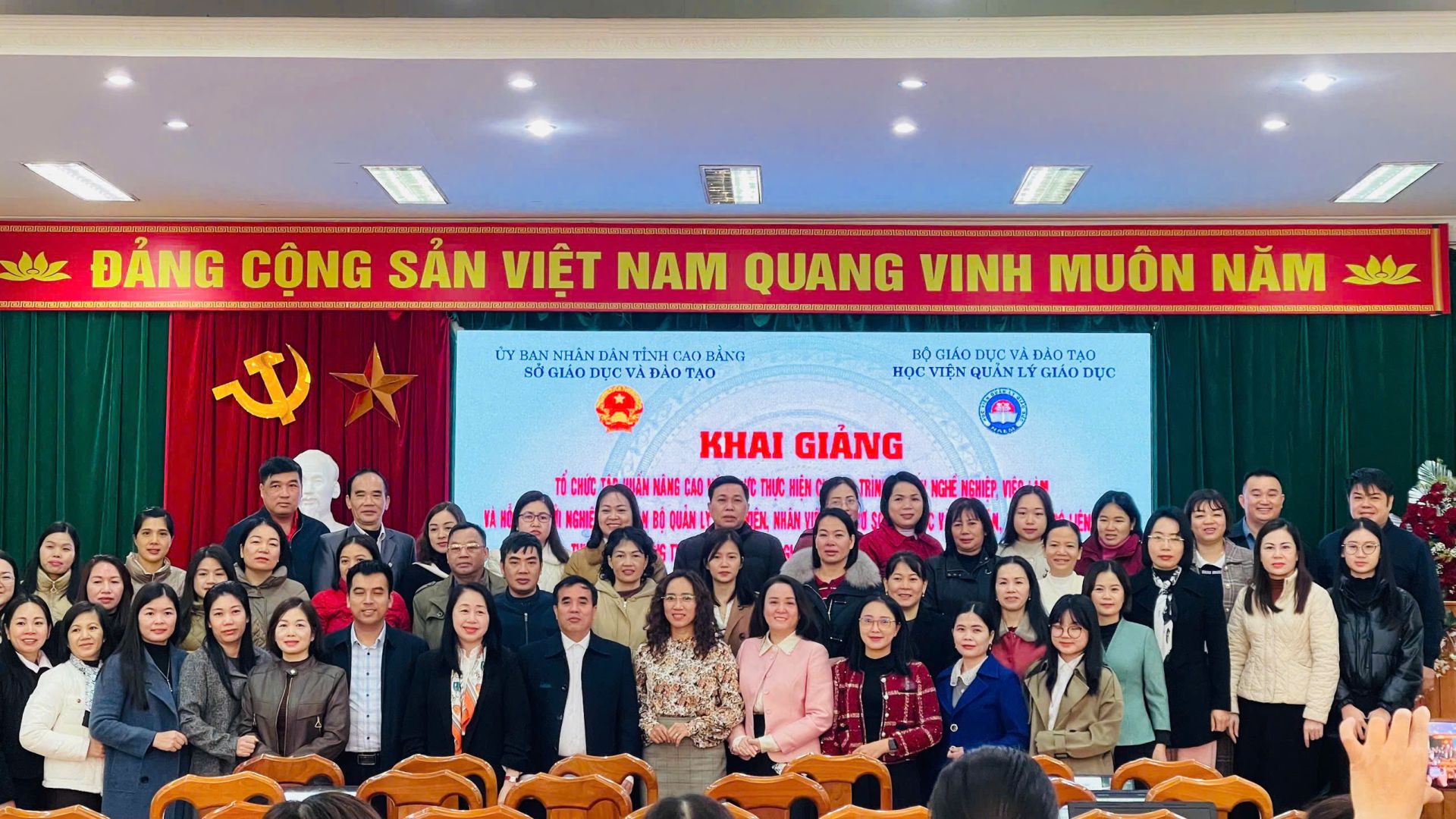 Tại Cao Bằng, tới dự lễ khai giảng có ông Bùi Quang Vinh, Phó Trưởng phòng Giáo dục nghề nghiệp – Sở Giáo dục và Đào tạo Cao Bằng, cùng cán bộ, công chức đại diện các đơn vị chức năng của Sở tham dự. Phát biểu khai mạc khóa bồi dưỡng, ông Bùi Quang Vinh khẳng định: đây là chương trình mục tiêu quốc gia giai đoạn 2021–2025 do Bộ Giáo dục và Đào tạo chủ trì; Học viện Quản lý giáo dục là đơn vị chuyên môn giúp Bộ GDĐT triển khai các nội dung nhằm nâng cao năng lực chuyên môn cho cán bộ quản lý giáo dục tỉnh Cao Bằng để thực hiện tốt Chương trình giáo dục phổ thông năm 2018, qua đó góp phần thúc đẩy kinh tế – xã hội tỉnh Cao Bằng phát triển bền vững. Vì vậy, các học viên tham dự lớp học cần tích cực tham gia các hoạt động theo chương trình khóa tập huấn để đạt được kết quả cao nhất, góp phần nâng cao chất lượng giáo dục tại đơn vị công tác.