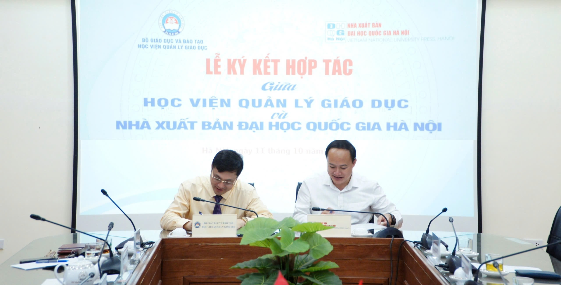 Ngày 11/10/2024, tại trụ sở Học viện Quản lý Qiáo dục, Nhà xuất bản Đại học Quốc gia Hà Nội và Học viện Quản lý Giáo dục ký kết Thỏa thuận hợp tác giữa hai bên nhằm thúc đẩy phát triển quan hệ hợp tác trong lĩnh vực xuất bản, phát hành giáo trình, sách chuyên khảo, sách tham khảo và các ấn phẩm khoa học phục vụ nghiên cứu, giảng dạy và học tập trên cơ sở các nguyên tắc thiện trí cùng phát triển về lĩnh vực giáo dục và đào tạo.