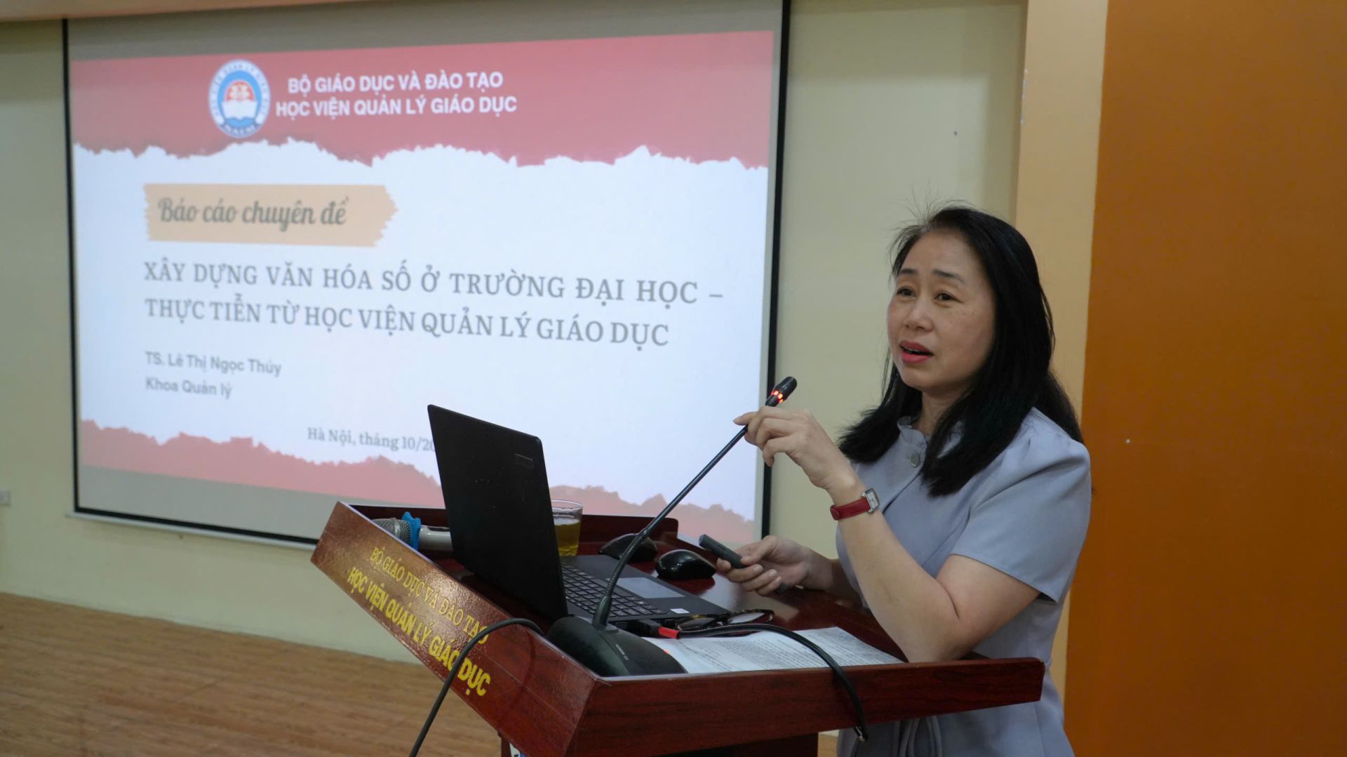 Để triển khai thực hiện Nghị quyết số 57-NQ/TW ngày 22/12/2024 của Bộ Chính trị về “Xây dựng và phát triển văn hóa số, công dân số và xã hội số Việt Nam đến năm 2035, tầm nhìn đến năm 2045”, ngày 28 tháng 10 năm 2025, Hội đồng trường Học viện Quản lý Giáo dục đã tổ chức Tọa đàm: Tăng cường năng lực quản trị số và văn hóa số trong hệ thống quản lý của Học viện Quản lý giáo dục – Từ nhận thức đến hành động thực hiện Nghị quyết 57-NQ/TW”.