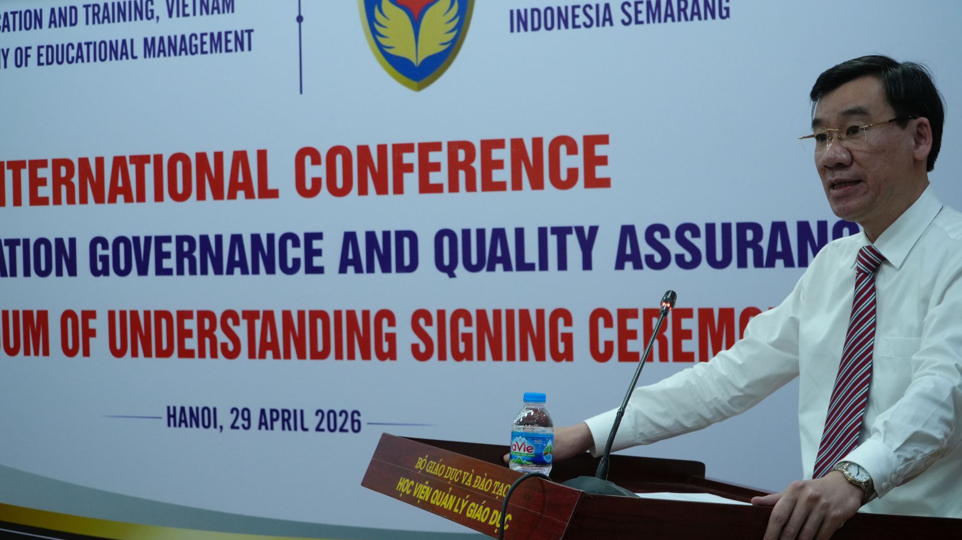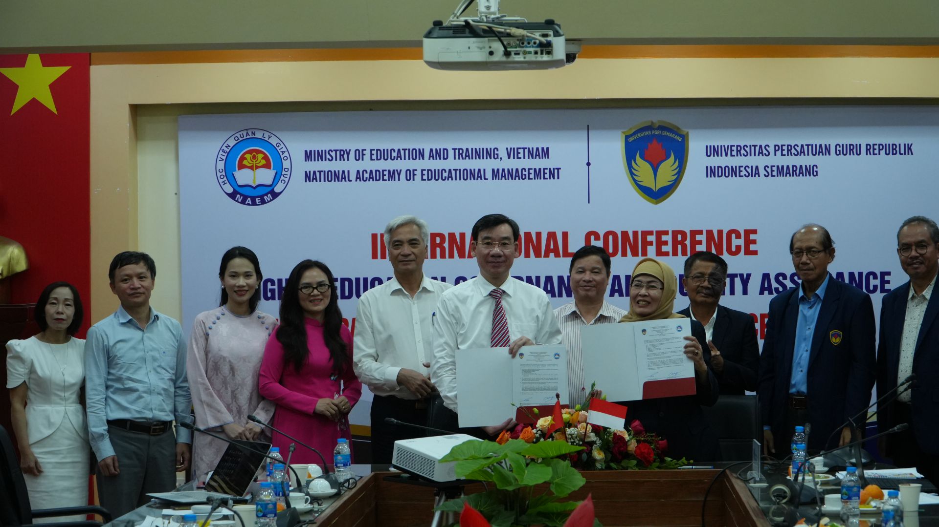 Ngày 29/4/2026, tại trụ sở Học viện Quản lý Qiáo dục, Trường Đại học Liên hiệp Giáo viên Cộng hòa Indonesia Semarang (UPGRIS) và Học viện Quản lý Giáo dục (NAEM) tổ chức Tọa đàm trao đổi kinh nghiệm về quản trị giáo dục đại học, đảm bảo chất lượng giáo dục giữa hai cơ sở giáo dục đại học đồng thời tổ chức Lễ ký kết Biên bản ghi nhớ hợp tác giữa hai bên nhằm thúc đẩy phát triển quan hệ hợp tác trong lĩnh vực quản trị giáo dục đại học, đảm bảo chất lượng; trao đổi học thuật, nghiên cứu khoa học và đào tạo bồi dưỡng nhà giáo và cán bộ quản lý giáo dục